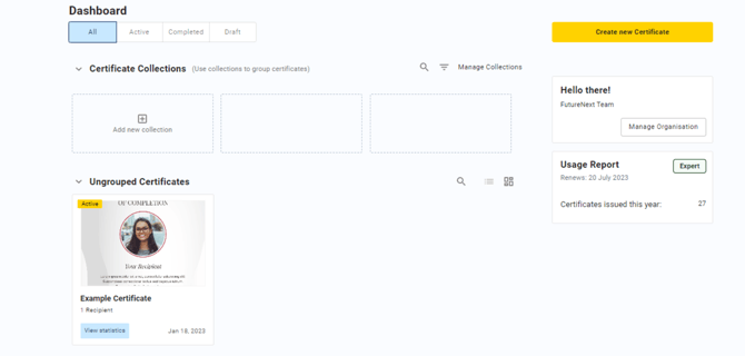 1. Go to Your Dashboard: Click on "Create New Certificate" or click on the drop-down to "Create New Badge."