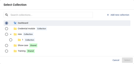 - In the pop-up, you can either create a new collection or move the credential to an existing one.