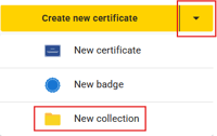 Collections help you keep your dashboard organised, especially when you manage a large number of certificate and badge templates. Use them to group credentials by program, department, event, or any structure that works for your team. You can also create sub-collections within a collection for even more granular organisation.
