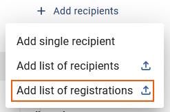 From the dropdown menu select: Add list of registrations