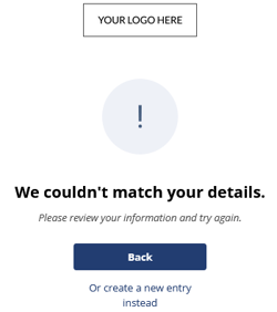 If the entered details do not match any existing registration entry, the participant will see a message indicating that no matching record was found.