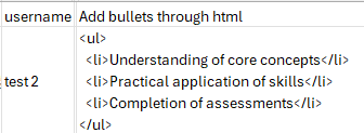 Wenn Rich Text (Aufzählungen / nummerierte Listen) in Kombination mit dynamischen Feldern verwendet wird, beeinflusst die Struktur der Daten in einer CSV-Datei oder im API-Payload direkt, wie die Inhalte auf dem Zertifikat dargestellt werden. Nachfolgend finden Sie die wichtigsten Verhaltensweisen und Best Practices.