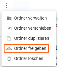 Klicken Sie auf „Ordner freigaben“.