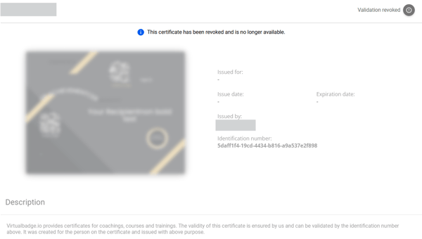 Ein widerrufener Nachweis ist ein digitales Zertifikat oder Badge, das nach der Ausstellung offiziell für ungültig erklärt wurde. Obwohl der Nachweis für Teilnehmer weiterhin sichtbar ist, wird er als widerrufen markiert und ist damit nicht mehr gültig. Dieser Status hilft, Missbrauch oder Verwirrung zu vermeiden, ohne den Datensatz vollständig zu löschen, und erhält gleichzeitig den Prüfpfad.